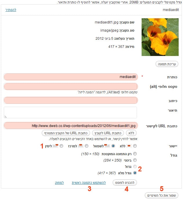 לשונית מדיה – בשלב זה לפחות, לא רצוי לבצע שינויים בהגדרות אלה לפני שמכירים טוב יותר את השימוש באתר.