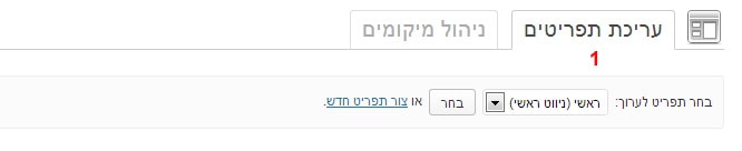 1. בלחיצה על לשונית עריכת תפריט תוכלו לבחור איזה תפריט לערוך וליצור תפריטים נוספים. נהוג לבחור שמות ברורים לתפריטים שמעידים על מיקומם באתר.