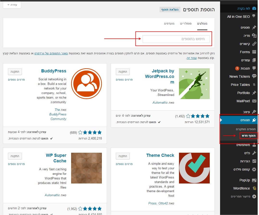 איך להוריד תוספים מספריית התוספים של וורדפרס?